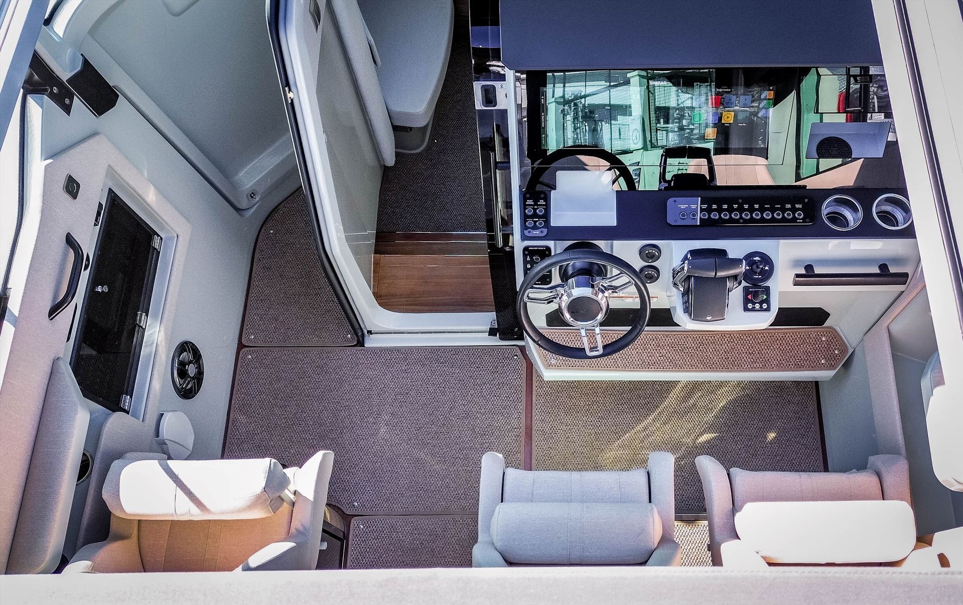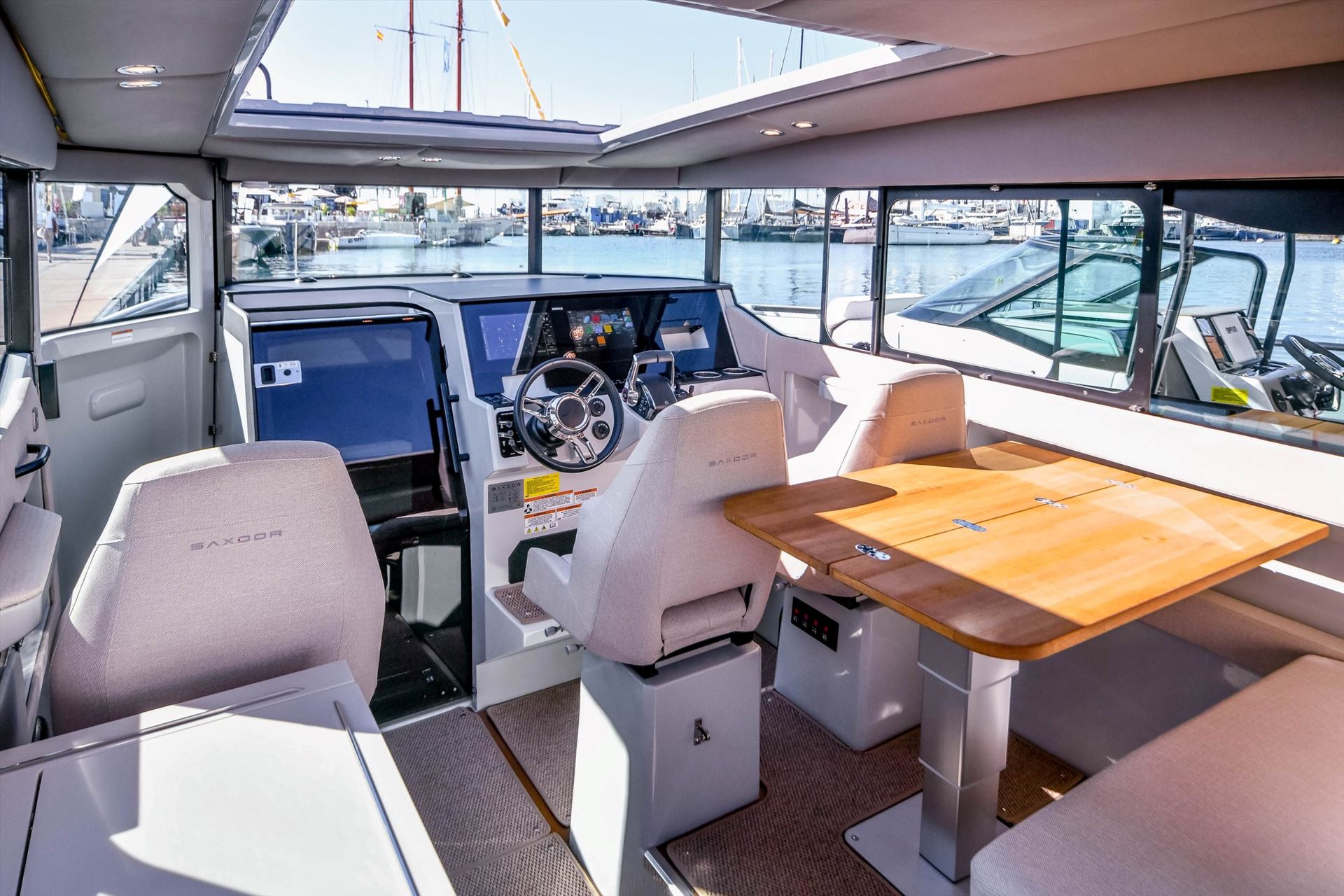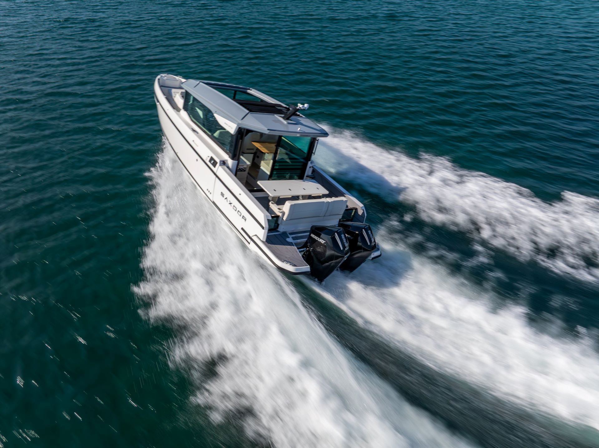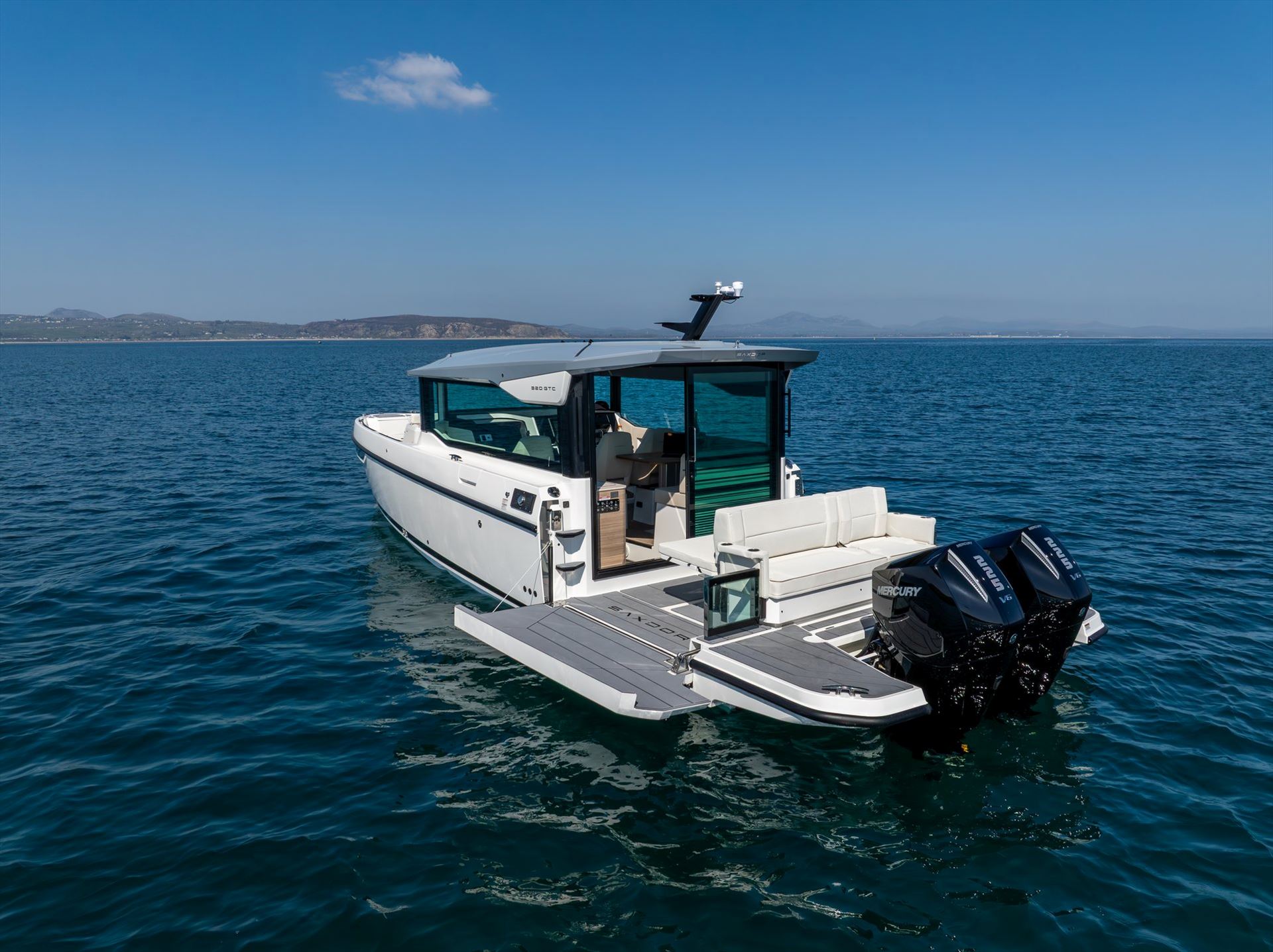 The Saxdor 320 GTC drives like no other because of its refined, economic and performance-oriented hull design. A low center of gravity, low weight, sharp entry, and a twin stepped hull create a unique driving experience in all kinds of seas and weathers across the world.